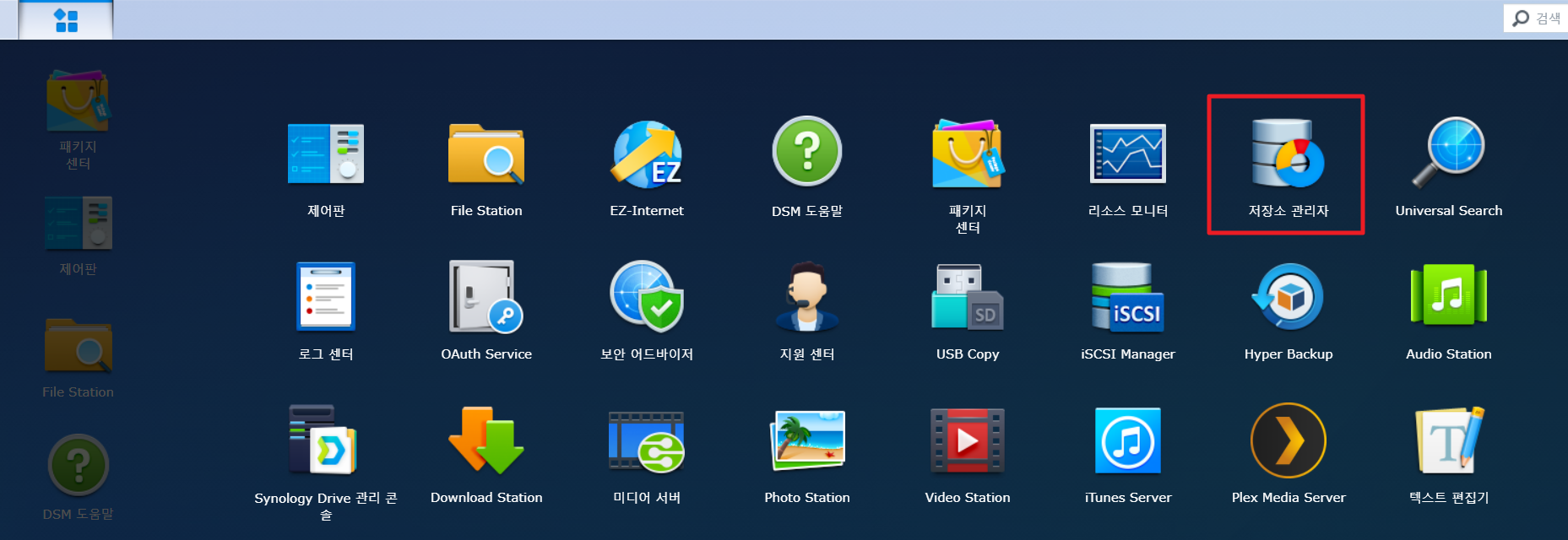 NAS 전원을 끈 상태에서 추가 하드 디스크를 장착한 후 NAS 전원을 켜고 NAS 관리 페이지에 접속합니다.