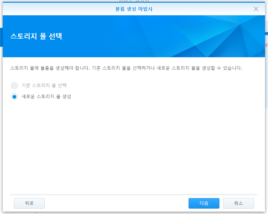 스토리지 풀은 [새로운 스토리지 풀 생성]을 선택합니다.