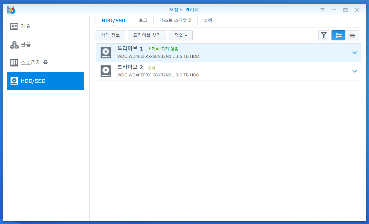 [HDD/SSD] 메뉴로 들어가면 추가한 드라이브가 보입니다.