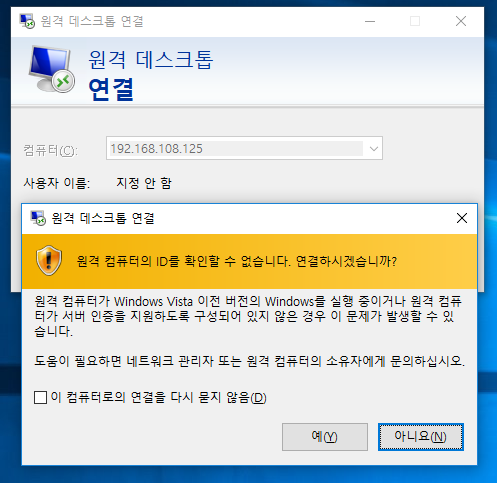 위와 같은 창이 나왔을 떄 예를 누르면 접속화면이 뜹니다.
