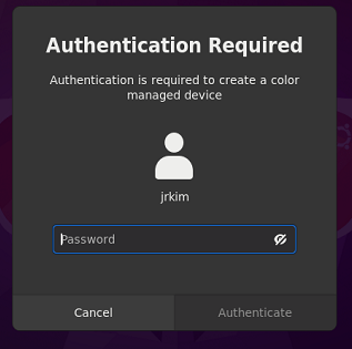 화면 출력에 대한 권한을 얻기 위해 비밀번호 입력 화면이 나옵니다.