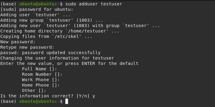 이상 Ubuntu에서 계정을 생성하는 방법을 알아보았습니다.