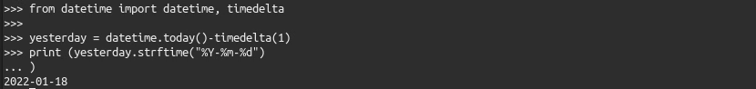 today()와 timedelta 모듈을 이용하면 현재시간 기준 어제 날짜와 시간도 계산할 수 있습니다.