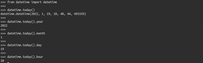datetime 모듈에 today() 메소드를 이용하면 현재 시간을 가져올 수 있습니다.