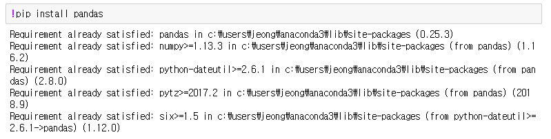 !pip install pandas(패키지명)