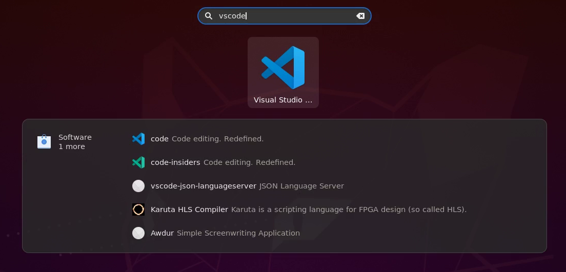 GUI에서는 vscode로 Application을 찾아주면 실행 아이콘을 볼 수 있습니다.