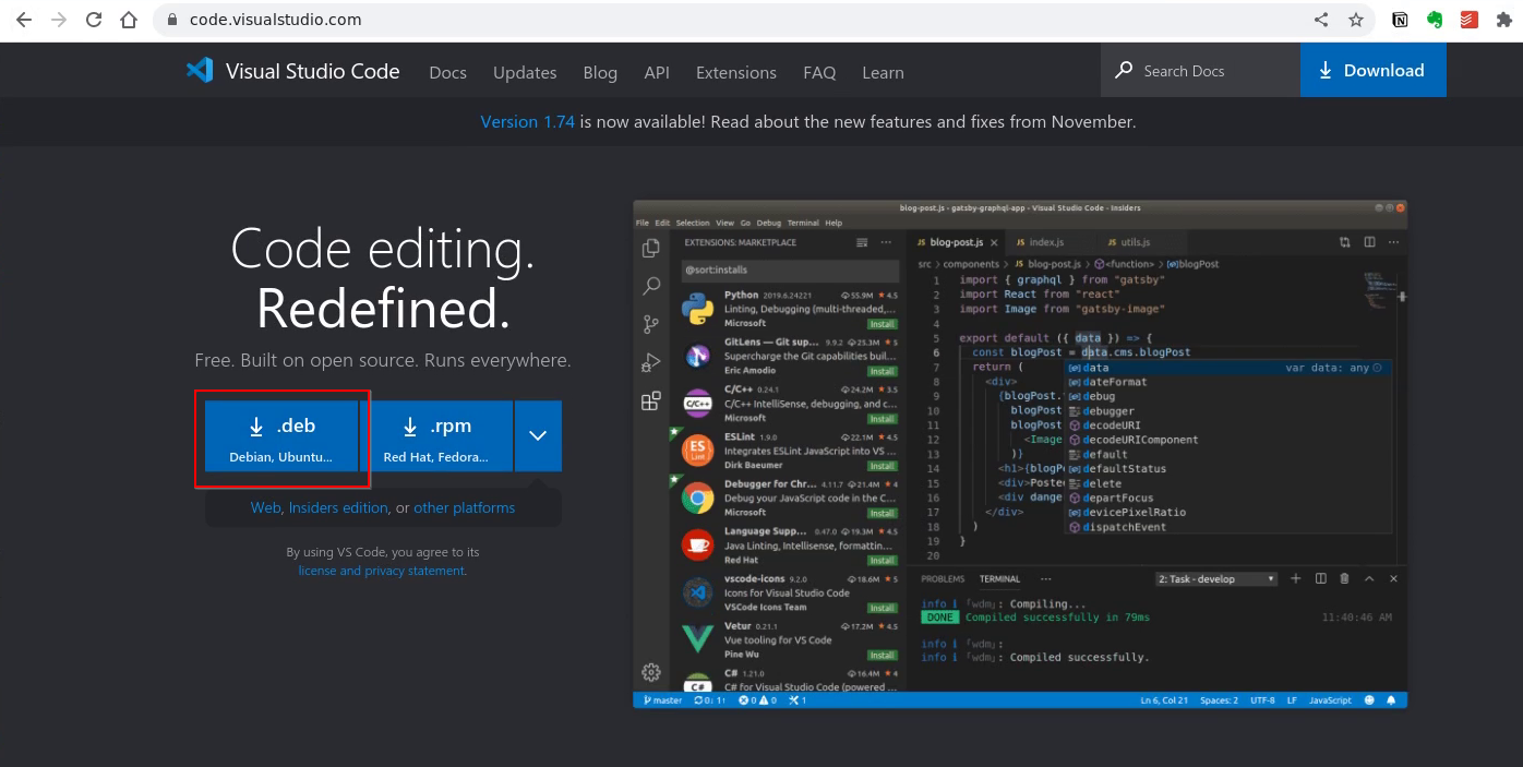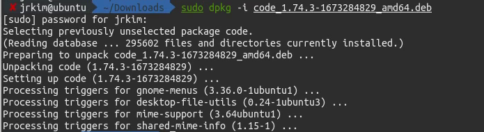 $ sudo dpkg -i code_1.74.3-1673284829_amd64.deb