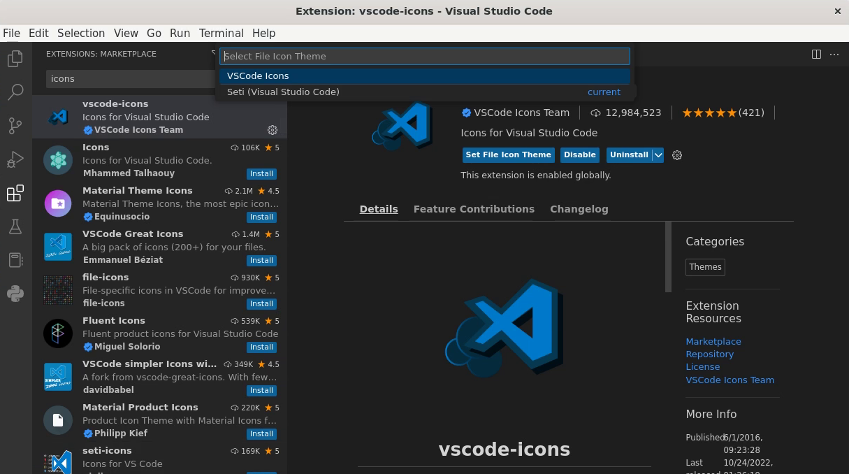추가적으로 vscode-icons 확장도 설치해 줍니다.