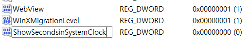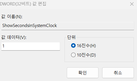 5. ShowSecondsinSystemClock을 더블클릭하여 값 편집