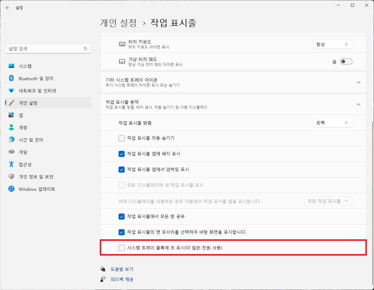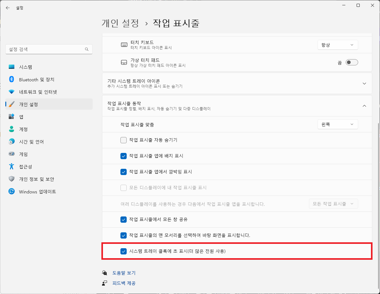 이상 윈도우11에서 작업표시줄 시계에 초를 표시하는 방법을 알아보았습니다.